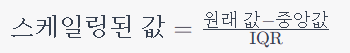다음은 RobustScaler의 스케일링 공식입니다: