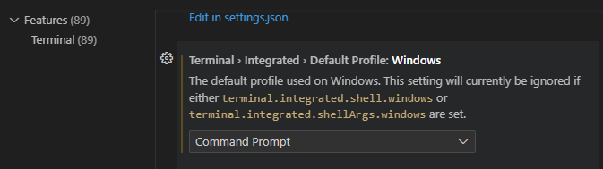 파워쉘 대신 Command Prompt 사용을 위해 다음 설정을 변경한다.